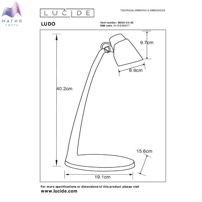 Серия настольных ламп Lucide Ludo предназначена для освещения рабочего стола. Лампы изготовлены из пластмассы. На выбор 3 цвета исполнения: черный/латунь, белый/серебро и черный. В качестве источника света используются встроенные светодиоды теплого белого цвета.