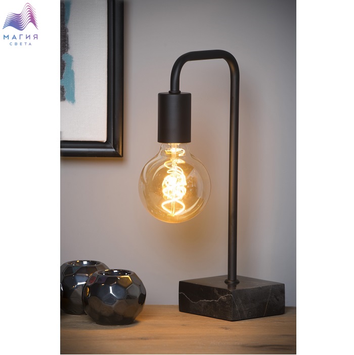 Настольная лампа Lucide Lorin переносит нас в стиль ретро. Металлическая нога дополнена мраморным основанием. Лампочка Эдисона подчеркнет стилистику настольного светильника. Лампа Lorin оснащена выключателем, расположенным на проводе.