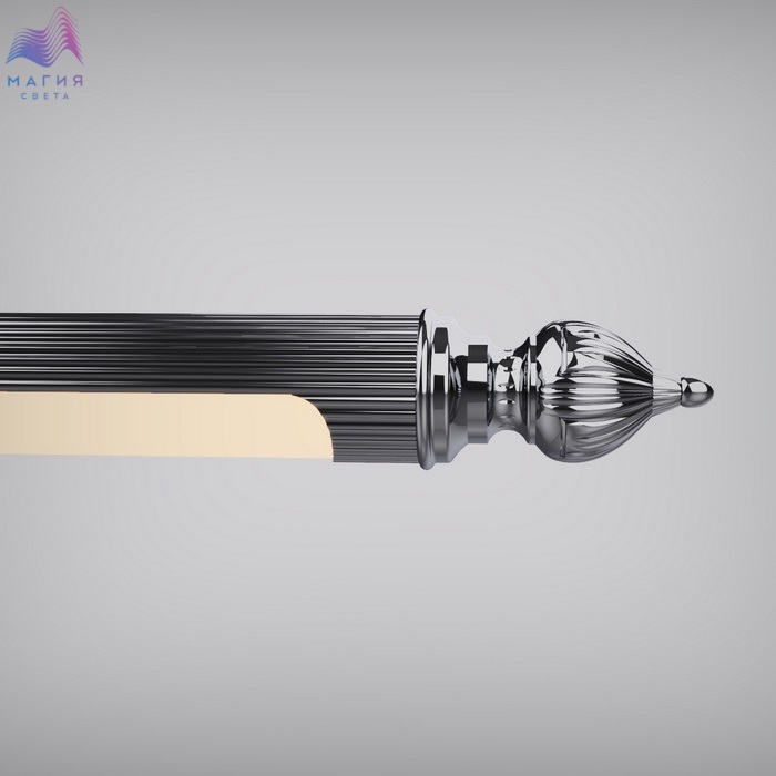 Серия классических подсветок картин Favourite Artifex представлена в двух цветах: бронзовом и хромированном. Рифленая поверхность, декоративные наконечники придают торжественный и нарядный образ светильникам.