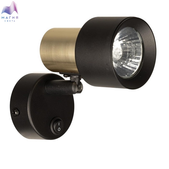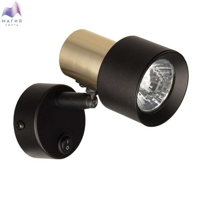 Спот (настенный светильник) Citilux SAT CL505611. Материал: металл, цвет: черный/золото. Основание круглое с удобным выключателем и поворотным плафоном на аккуратной стойке.