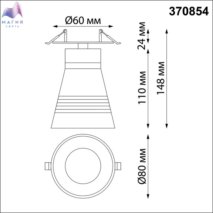 В корпусе светильника Novotech Sobit есть акриловые части, поэтому его используют только с LED лампой max.9Вт.