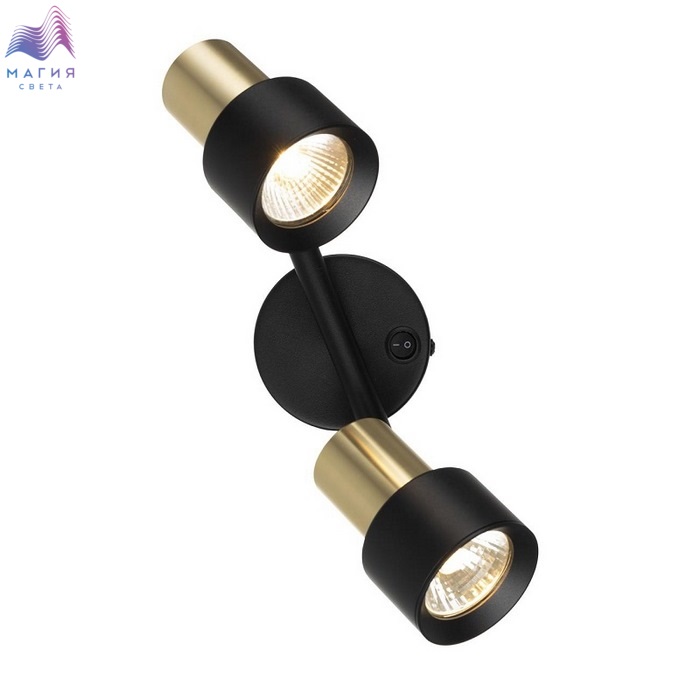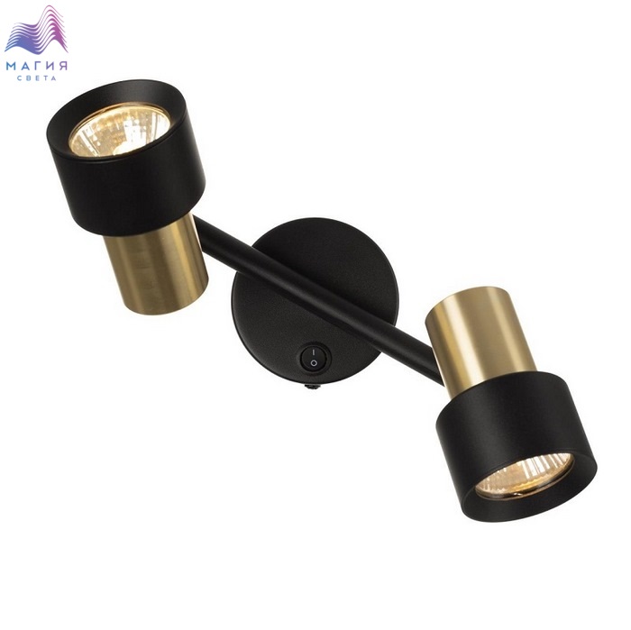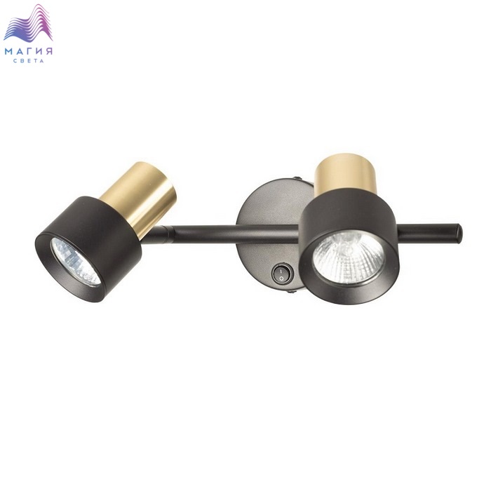 Споты Citilux SAT CL505621. Материал: металл. Цвет: черный/золото. Основание круглой формы с удобным выключателем, на штанге расположены два поворотных плафона.