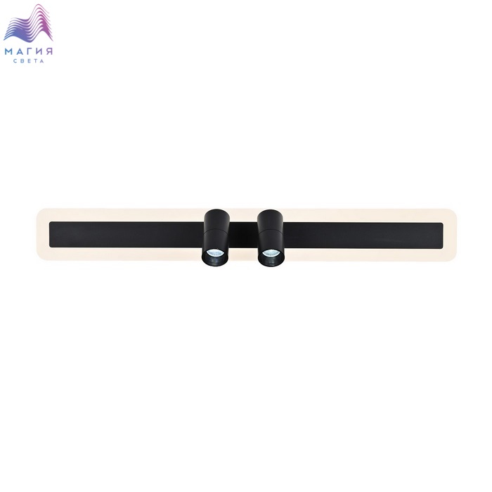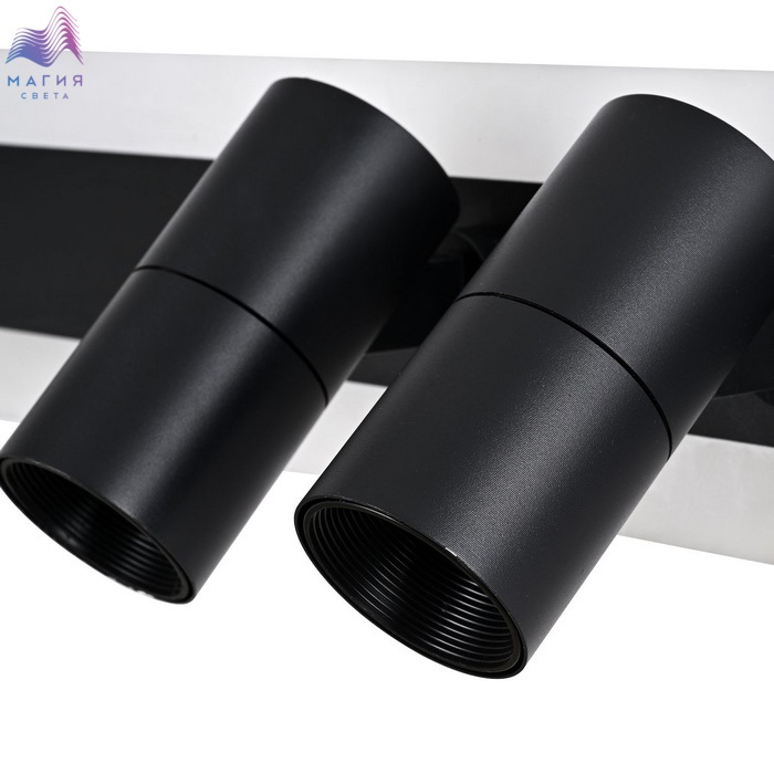 Споты из серии Favourite Trick оснащены 2 вариантами света: акриловой подсветкой и металлическими плафонами-цилиндрами, в которых расположены источники света. Каркас изготовлен из металла и покрытт черной краской.