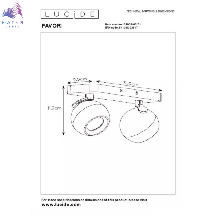 Серия Lucide Favori очаровательна благодаря сферическим плафонам. Светильники полностью выполены из металла. К заказу доступны 2 цвета покрытия: черный и белый.