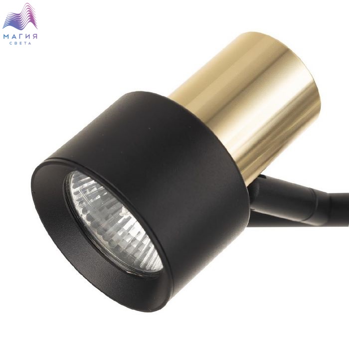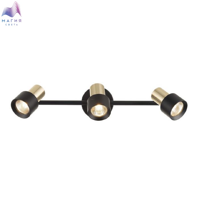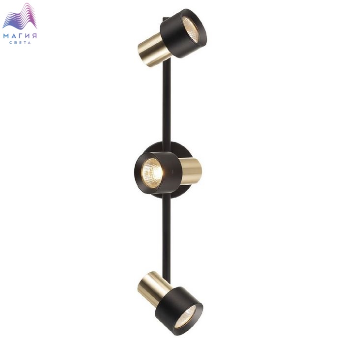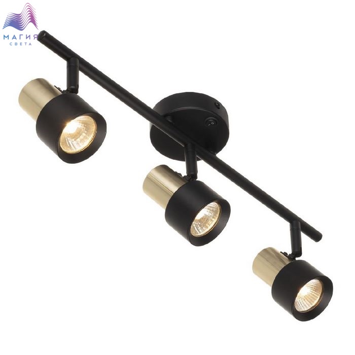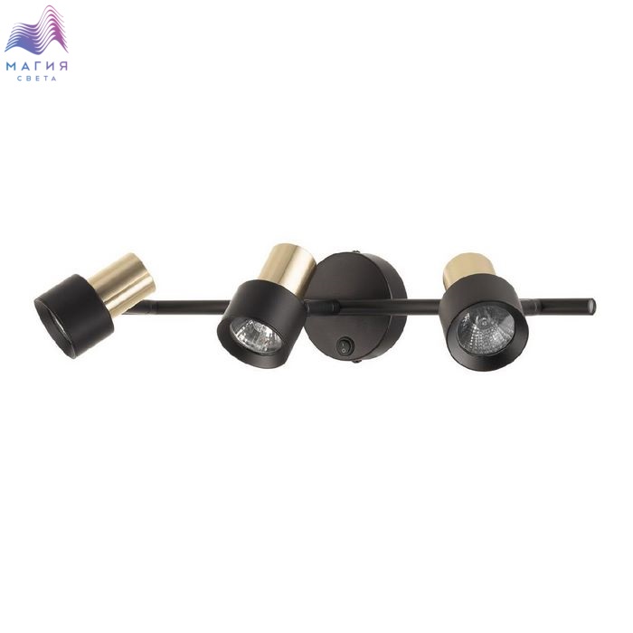 Споты Citilux SAT CL505631. Материал: металл. Цвет: черный/золото. Основание круглой формы с удобным выключателем, на штанге расположены три поворотных плафона.