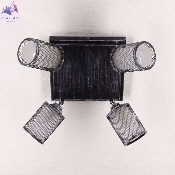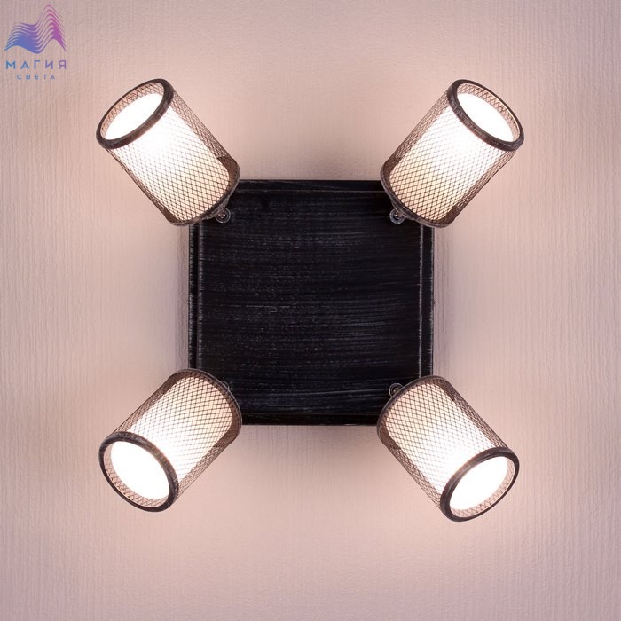 Потолочный светильник с четырьмя поворотными плафонами Citilux ROBIN CL535541. Материал: металл/стекло. Цвет: хром/белый/серебро. Корпус металлический квадратной формы, цвет чёрный с серебристой патиной. Цилиндрические плафоны двойные - внутренний стеклянный полуматовый, обеспечивает мягкое и равномерное освещение, в то время как наружный металлический сетчатый плафон.