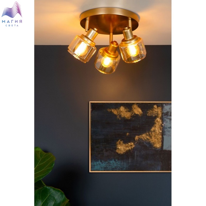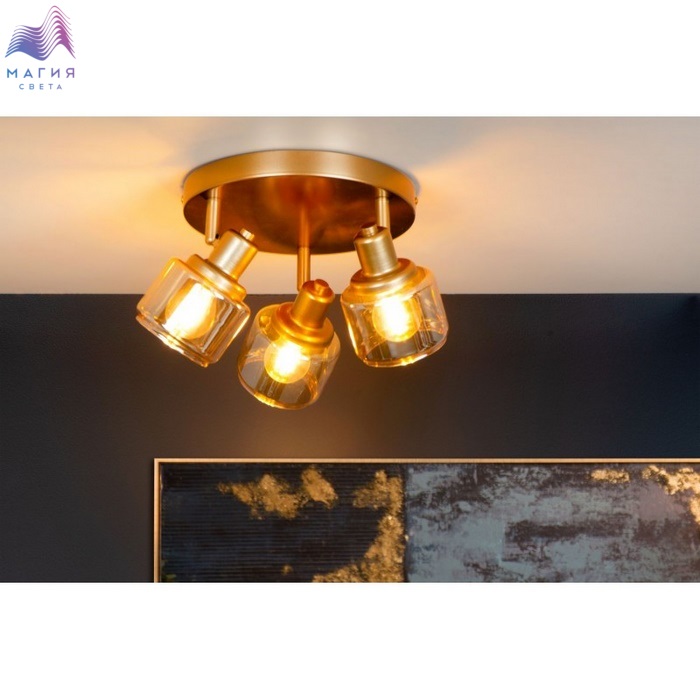 Классический или современный интерьер можно преобразить с помощью серии спотов Lucide Bjorn. Металлическое основание матового золотого цвета дополнено янтарными стеклянными плафонами.
