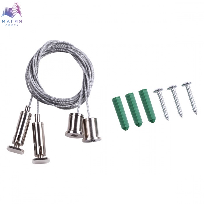 Подвесной комплект с 3-х метровыми тросами используется для крепления трековой системы освещения на необходимой высоте. Плюсы: прочность, легкость установки, экологическая безопасность.