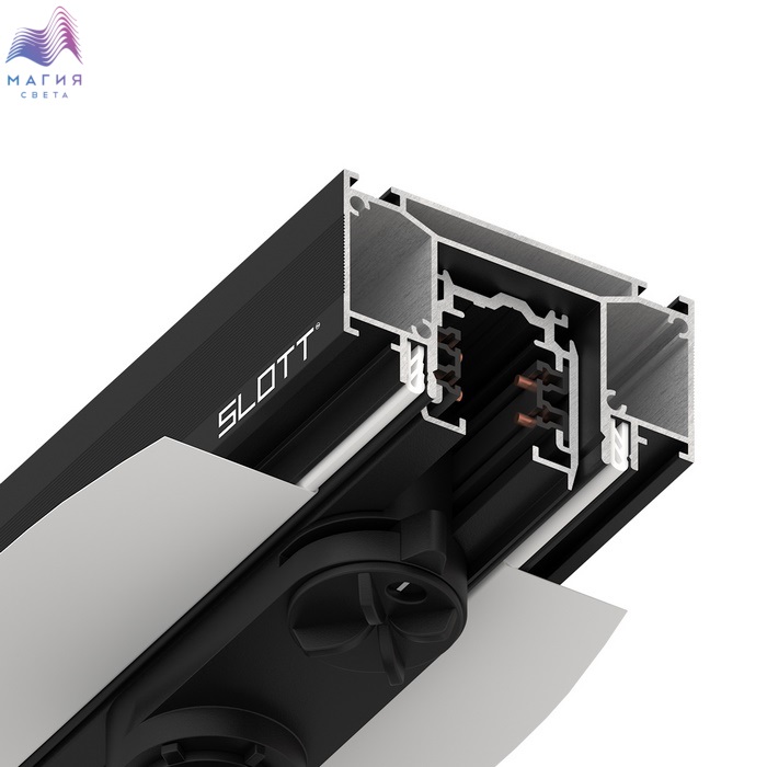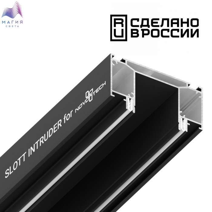 Интрудер – механизм интеграции 3-х фазного трека в натяжной потолок. Он выполнен на демпферной системе, что подразумевает простую установку в любой тип натяжного пололка ПВХ или ТКАНЬ различной плотности. Данный продукт идет длинной 2 метра и подрезается под нужный размер на месте и в зависимости от ТЗ объекта, можно доукомплектовать торцевыми заглушками (арт. 135185-135186). Трек в интрудер устанавливается очень просто, он вкладывается в плоскость и крепится с помощью саморезов. На потолок интрудер крепится как обычный трек под натяжной потолок с помощью строительных уголков, которые всегда в наличии у монтажников.
