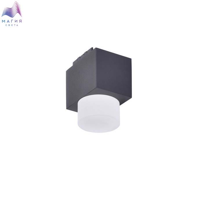 Магнитный светильник на шинопровод, черного цвета, с декоративным акриловым рассеивателем.