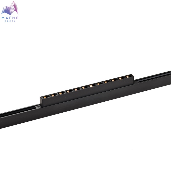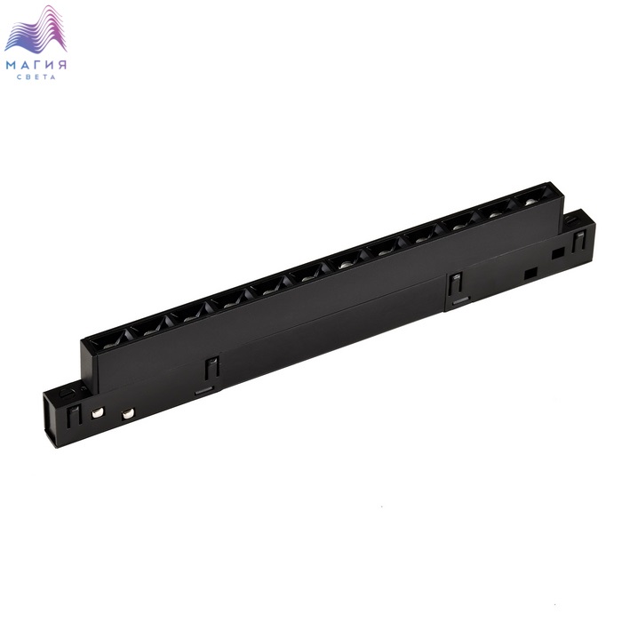 Трековый линейный светильник в черном цвете, с гнездовой структурой светодиодов, угол рассеивания света 30°.
