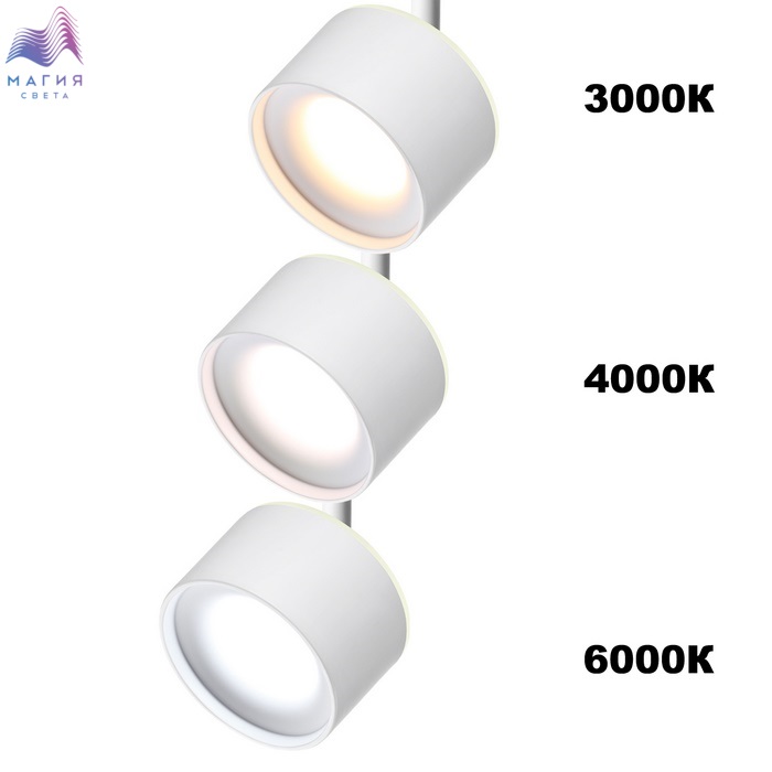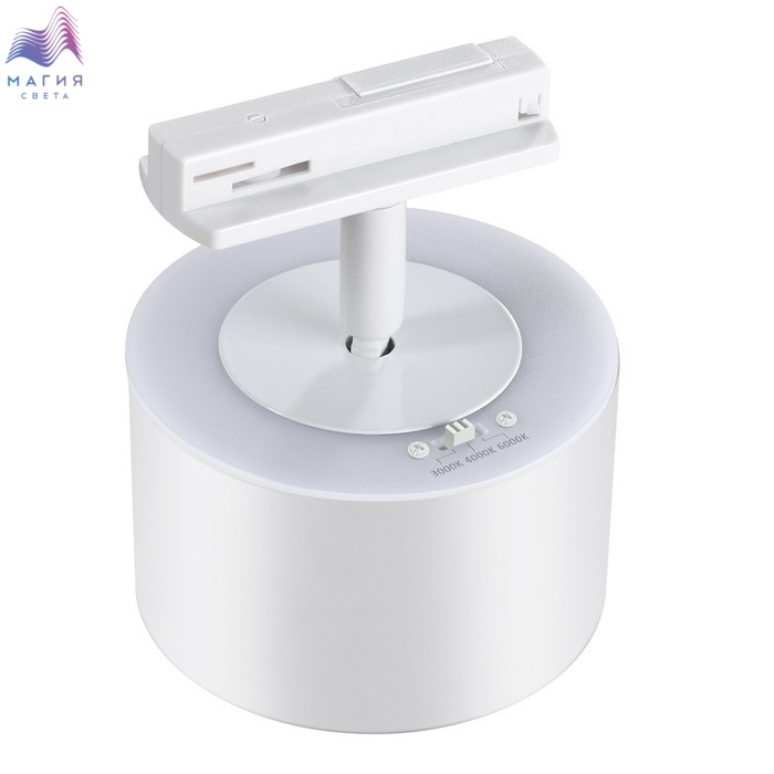 Светильник трековый однофазный трехжильный светодиодный Novotech Giro с переключателем цветовой температуры. На корпусе светильника находится переключатель 3000К-4000К-6000К, с помощью которого Вы можете самостоятельно выбрать нужную Вам цветовую температуру
