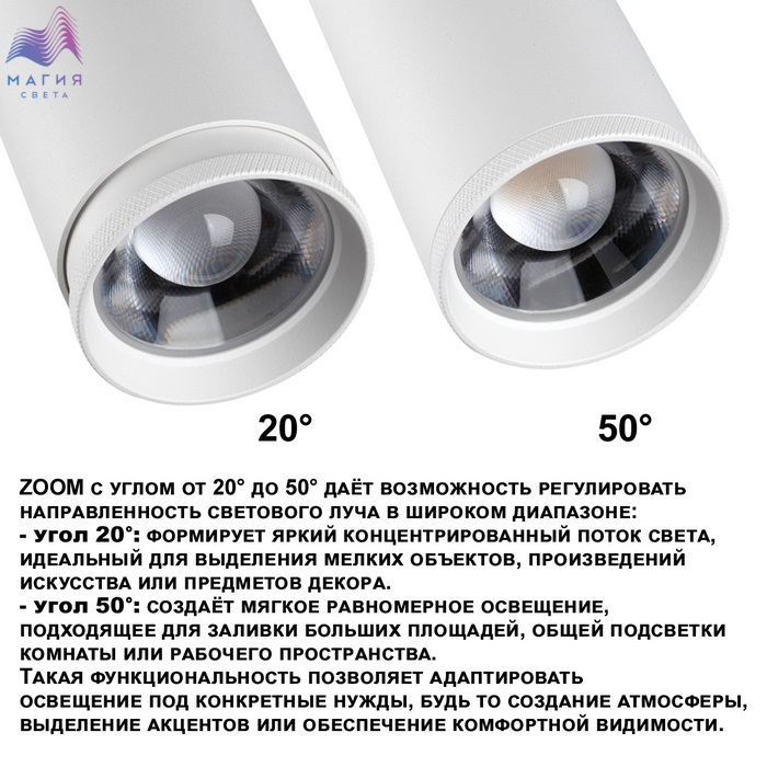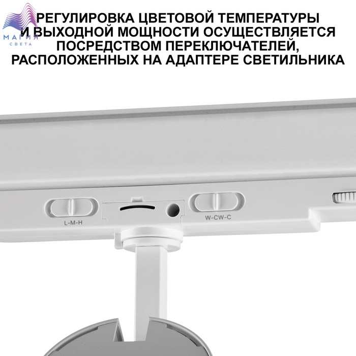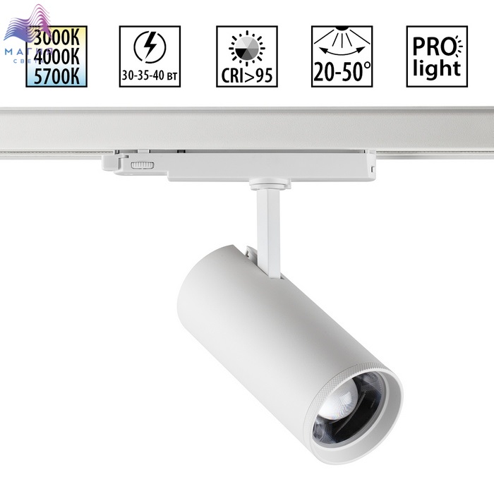 Трековый трехфазный LED-светильник Novotech NAIL. Уникальная система настроек включает смену цветовой температуры (от теплого 3000К, нейтрального 4000К до холодного белого 6000К), регулирование интенсивности света (30 Вт, 35 Вт или 40 Вт) и изменение угла рассеивания (от четких акцентирующих лучей 20° до равномерно распределенных потоков света 50°).