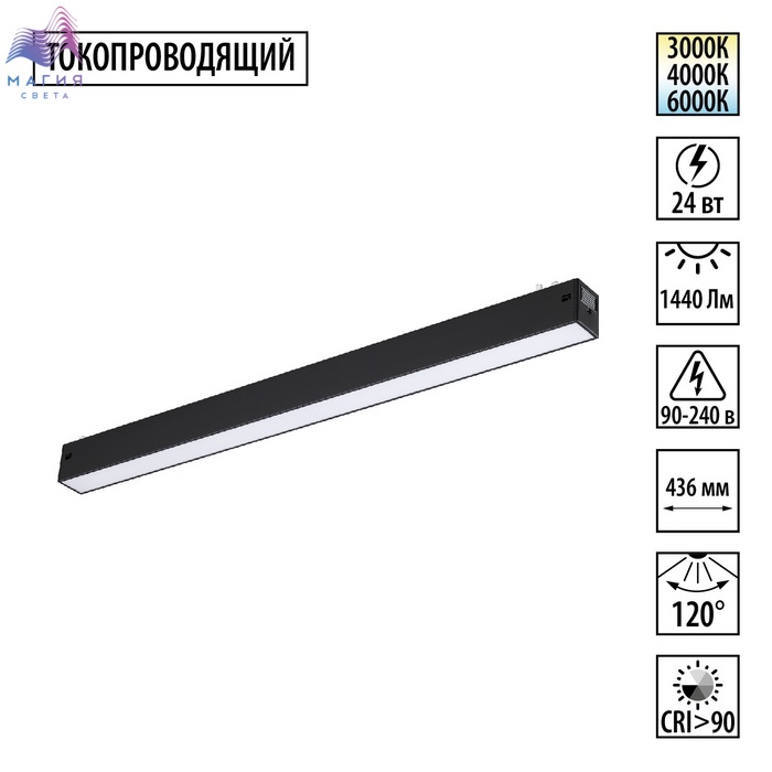 Трековая смарт-система Novotech VECTOR 220В. Система представлена двумя линейками светильников: первая оснащена интеллектуальной системой управления через мобильное приложение, позволяющей менять яркость и цветовую температуру света, вторая — светильники с простым механическим переключателем трех уровней цветовой температуры (3000, 4000, 6000 К).