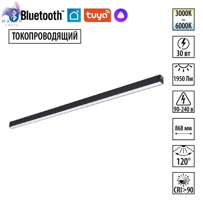 Трековая смарт-система Novotech VECTOR 220В. Система представлена двумя линейками светильников: первая оснащена интеллектуальной системой управления через мобильное приложение, позволяющей менять яркость и цветовую температуру света, вторая — светильники с простым механическим переключателем трех уровней цветовой температуры (3000, 4000, 6000 К).