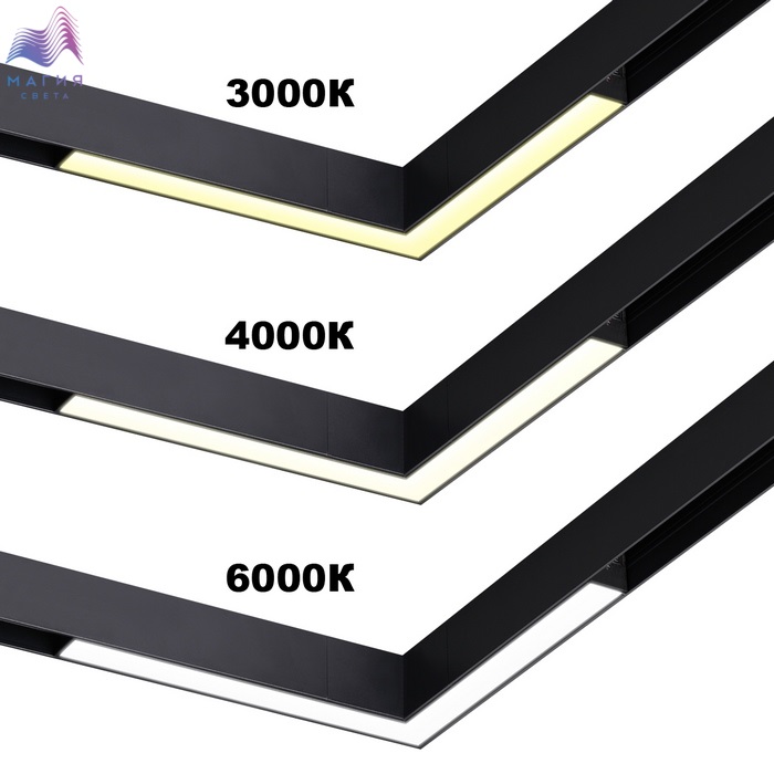 Трековая смарт-система Novotech VECTOR 220В. Система представлена двумя линейками светильников: первая оснащена интеллектуальной системой управления через мобильное приложение, позволяющей менять яркость и цветовую температуру света, вторая — светильники с простым механическим переключателем трех уровней цветовой температуры (3000, 4000, 6000 К).