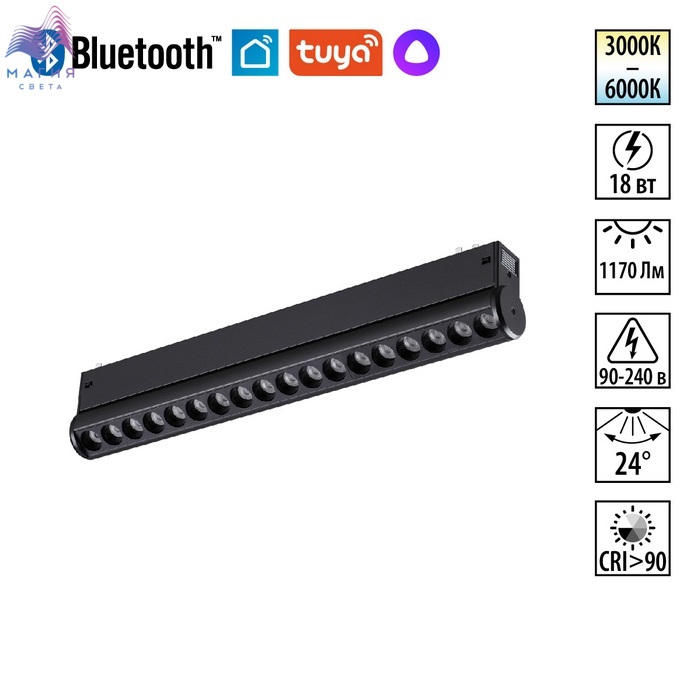 Трековая смарт-система Novotech VECTOR 220В. Система представлена двумя линейками светильников: первая оснащена интеллектуальной системой управления через мобильное приложение, позволяющей менять яркость и цветовую температуру света, вторая — светильники с простым механическим переключателем трех уровней цветовой температуры (3000, 4000, 6000 К).