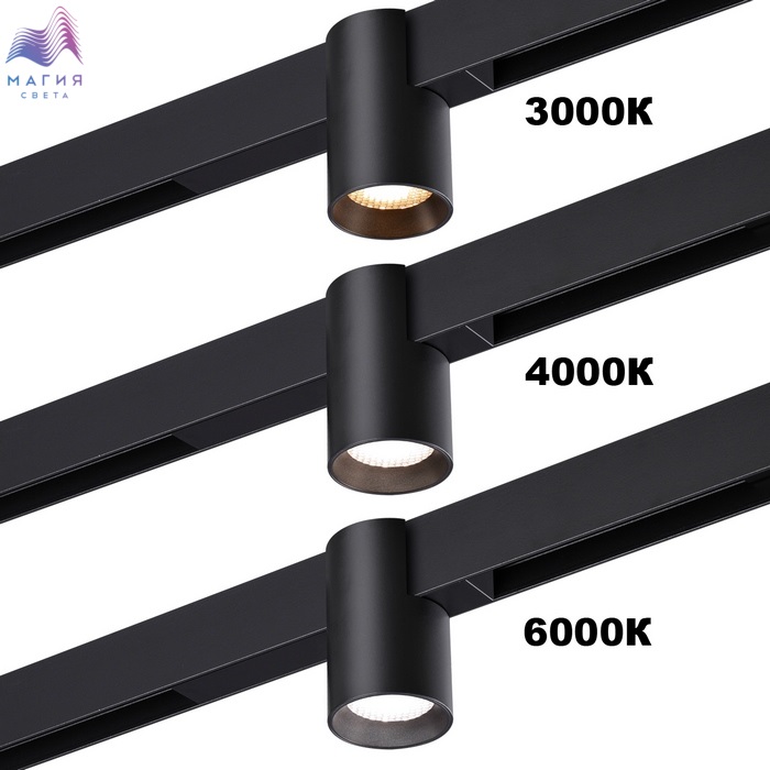 Трековая смарт-система Novotech VECTOR 220В. Система представлена двумя линейками светильников: первая оснащена интеллектуальной системой управления через мобильное приложение, позволяющей менять яркость и цветовую температуру света, вторая — светильники с простым механическим переключателем трех уровней цветовой температуры (3000, 4000, 6000 К).