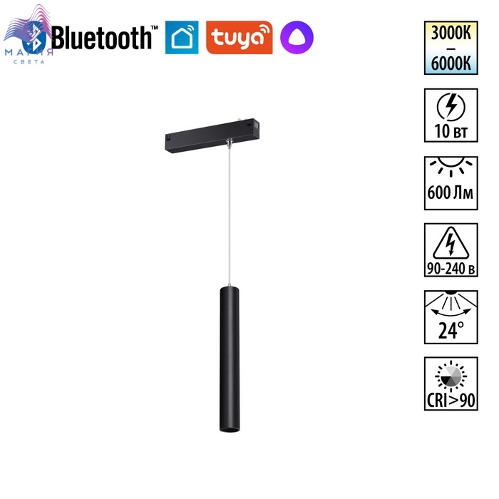 Трековая смарт-система Novotech VECTOR 220В. Система представлена двумя линейками светильников: первая оснащена интеллектуальной системой управления через мобильное приложение, позволяющей менять яркость и цветовую температуру света, вторая — светильники с простым механическим переключателем трех уровней цветовой температуры (3000, 4000, 6000 К).
