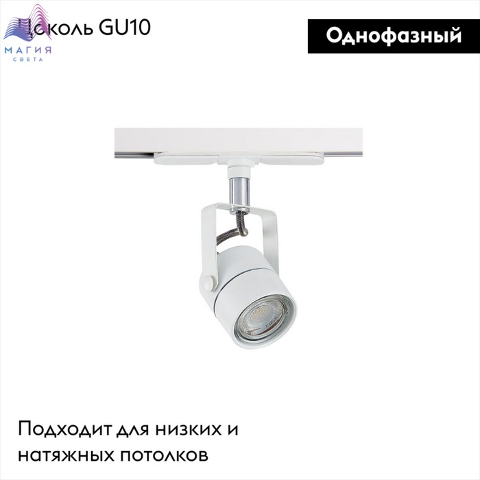 Поворотный трековый светильник Citilux Ринг CL525T10. Материал: металл. Цвет: белый. Плафон цилиндрической формы.