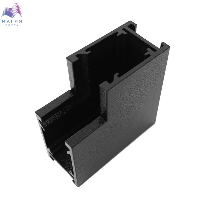 Угловой соединитель для накладного/подвесного магнитного шинопровода черного цвета для перехода в перпендикулярную плоскость.