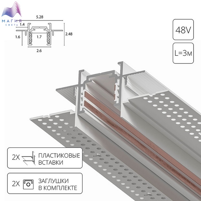 Магнитный шинопровод встраиваемый в гипсокартон Arte Lamp OPTIMA-ACCESSORIES.