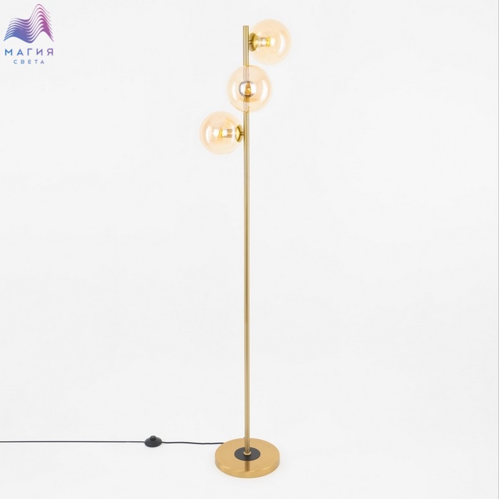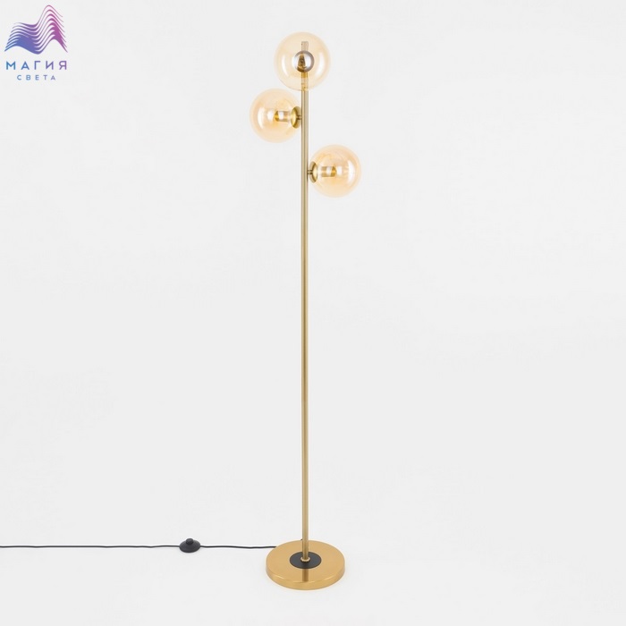 Торшер Citilux Лорен CL146933. Материал: металл/стекло. Цвет: бронза/шампань Плафоны в форме шара, изготовлены из прозрачного стекла светло-янтарного оттенка. Длина сетевого шнура 2м, выключатель напольный.