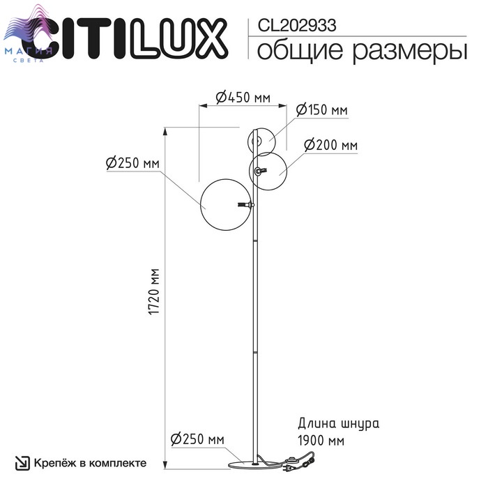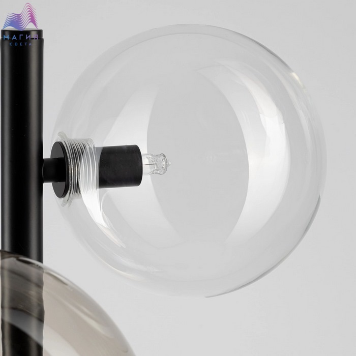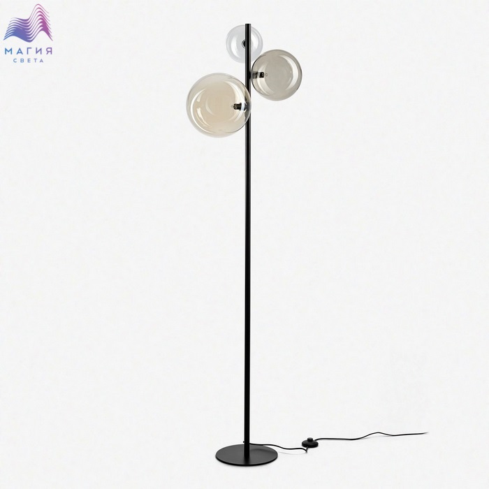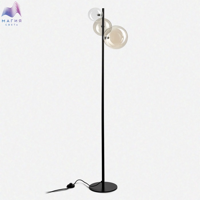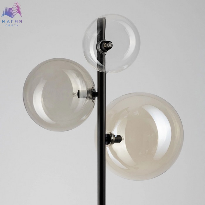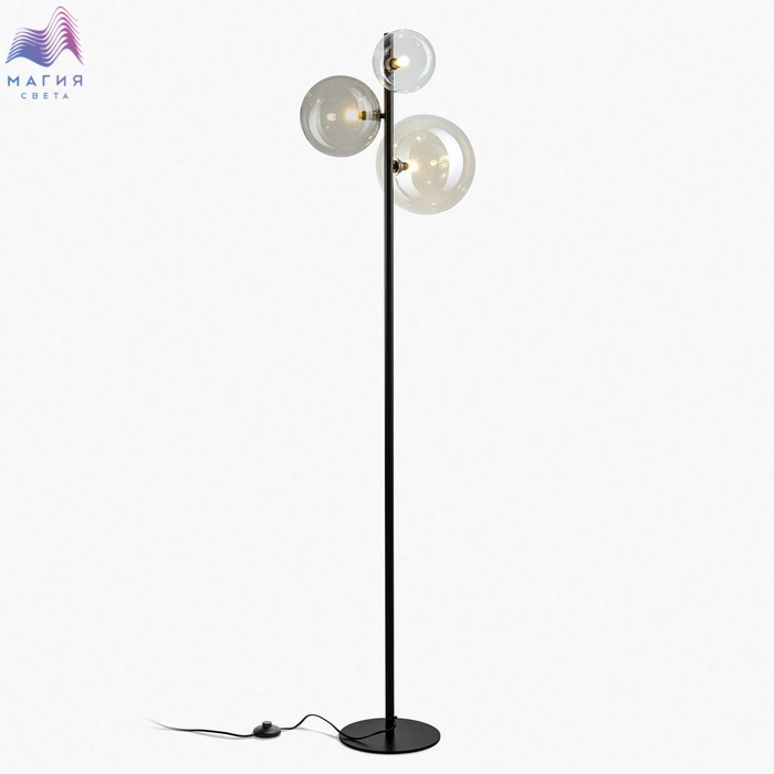 Торшер Citilux ORTON CL202933. Материал: металл/стекло. Цвет: черный/дымчатый/шампань. Прозрачный, с золотистым оттенком шампань и дымчатый плафоны (размером 15, 20 и 25см) превращают торшер в художественный элемент даже при выключенном свете.