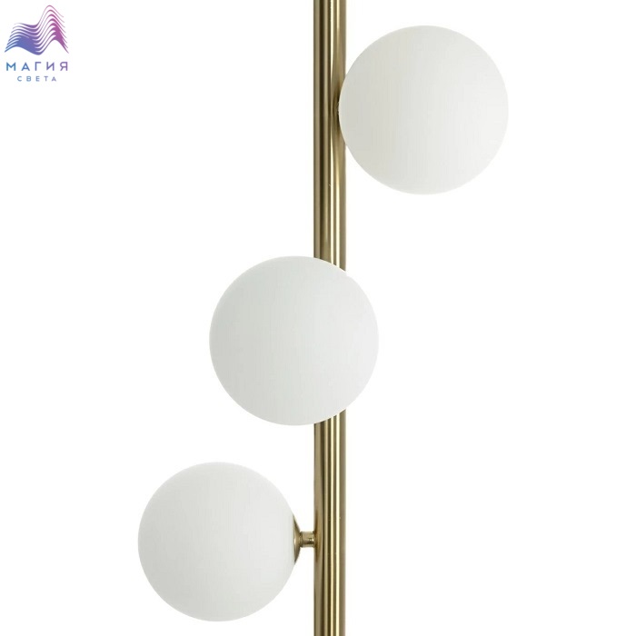 Торшер Citilux Рунд CL205950N. Материал: металл/стекло. Цвет: бронза/белый. Плафоны в форме шара изготовлены из матового стекла, максимально равномерно рассеивают свет. Длина сетевого шнура с напольным выключателем 2м.