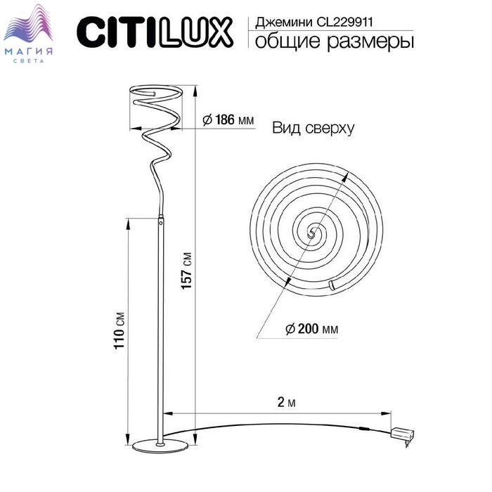 Торшер Citilux Джемини CL229911. Материал: металл/полимер. Вцет: хром/белый. Стройная стойка торшера, увенчана светодиодным модулем в форме изящно изогнутой спирали. Изделие оснащено встроенным диммером с плавной регулировкой и памятью уровня яркости.