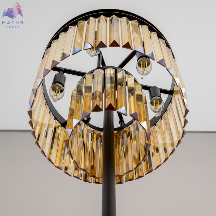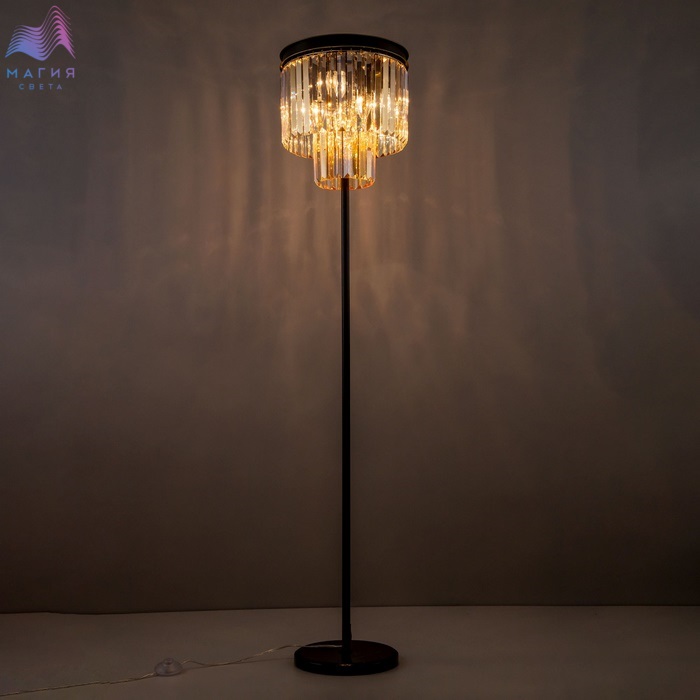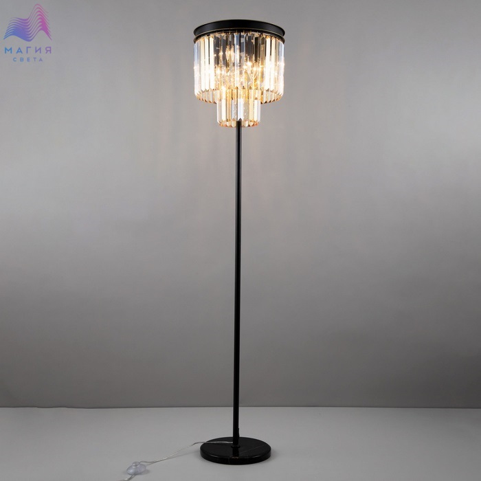 Торшер Citilux Мартин CL332962 с хрустальными подвесками модного оттенка шампань, расположенными каскадом в два ряда. Круглая верхняя часть модели и стойка выполнена из металла солидной толщины, окрашенного в темный коричневый цвет. Основание из натурального камня черного цвета. Длина сетевого провода 1,8м.