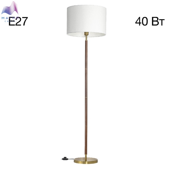 Торшер Citilux SHERMAN CL436912. Материал: металл/текстиль. Цвет: бронза/под дерево/молочно-белый. Ножной выключатель расположен на сетевом шнуре, длина шнура — 2м.