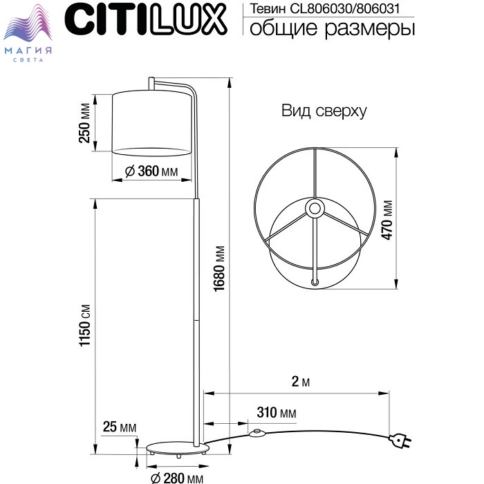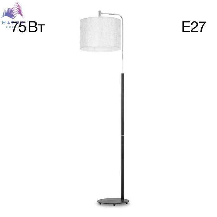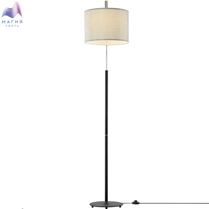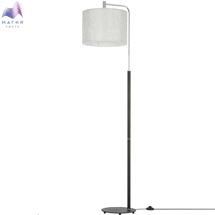 Торшер с абажуром Citilux Тевин CL806031. Материал: металл/текстиль. Цвет: матовый черный/хром/серый. Абажур цилиндрической формы из серой текстурной ткани, на подложке из оптического полимера. Длина сетевого шнура с напольным выключателем 2м.