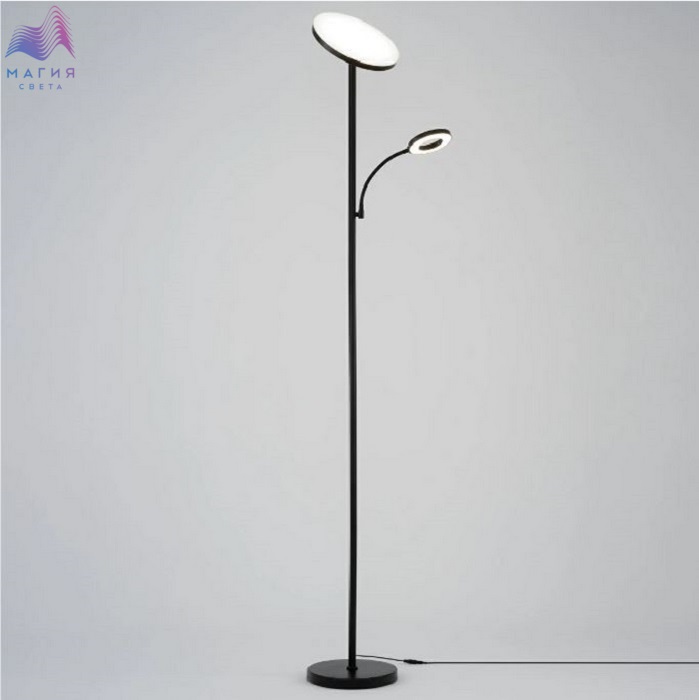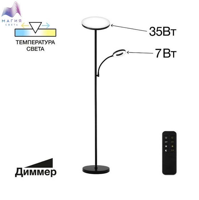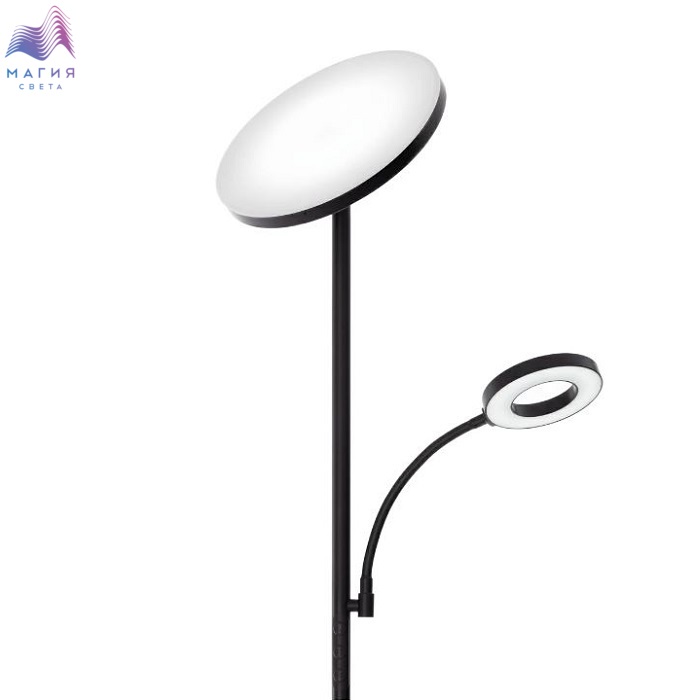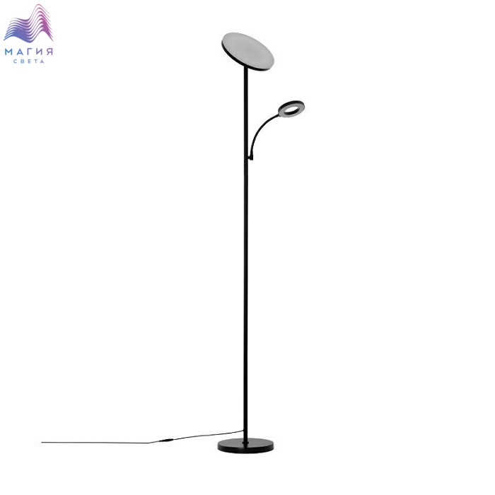 Торшер Citilux Click CL810011 с сенсорным управлением выполнен в современном стиле. Материал: металл/пластмасса. Цвет: черный/белый. Верхний плафон поворотный, для общего освещения, мощность 35Вт. Нижний плафон для чтения, на гибкой ножке, мощность 7Вт. Пульт ДУ также включен в комплект.