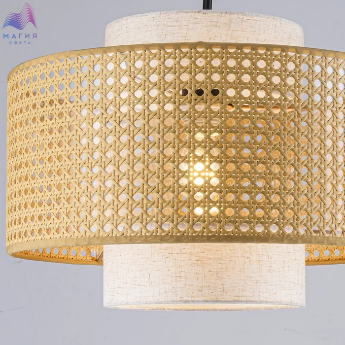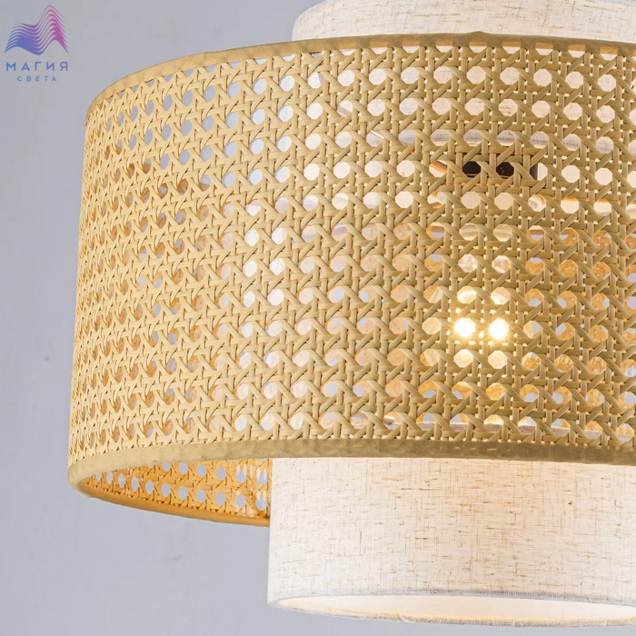 Коллекция светильников Favourite Organicum сочетает в себе природную эстетику и современный дизайн. Абажуры изготовлены из натуральных материалов: ткани, ротанга и плетеных бумажных канатиков, дополненные декоративным поясом из плетеного бамбука.