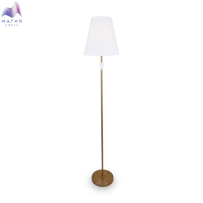 Серия Freya Pietra исполнена в цвете латунь. Дополнительные элементы - минималистичные вставки из натурального белого мрамора. Белые абажуры из ткани в форме конуса.