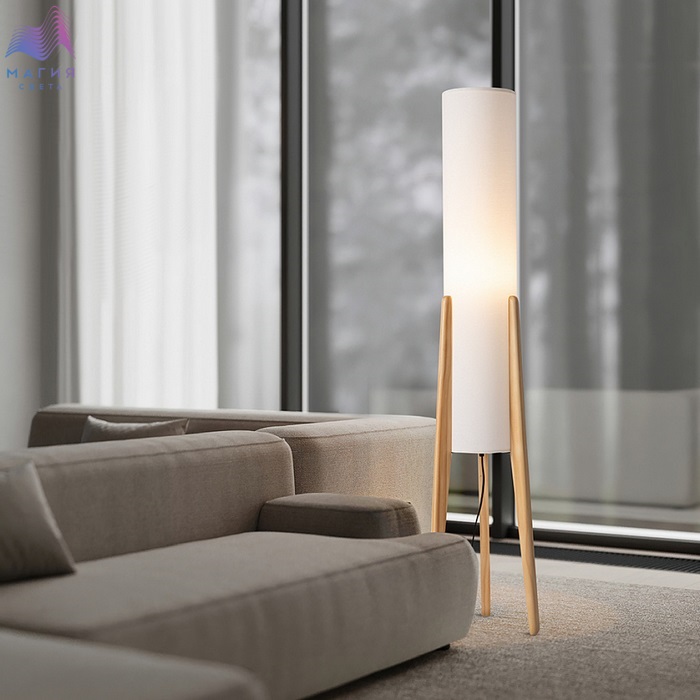 Напольный светильник Freya Bliss - это современная интерпретация торшера-треноги. Деревянное основание дополнено объемным цилиндрическим плафоном белого цвета, выполненного из ткани. На проводе расположен выключатель.