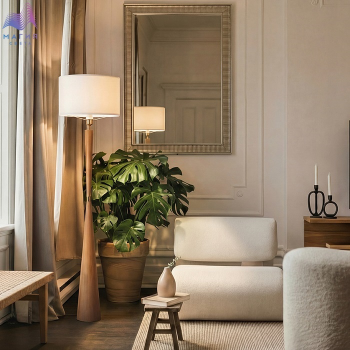 Торшер Freya Swan имеет деревянное основание. Абажур выполнен из белой ткани. Напольный светильник прекрасно впишется в скандинавский интерьер или эко-стиль.