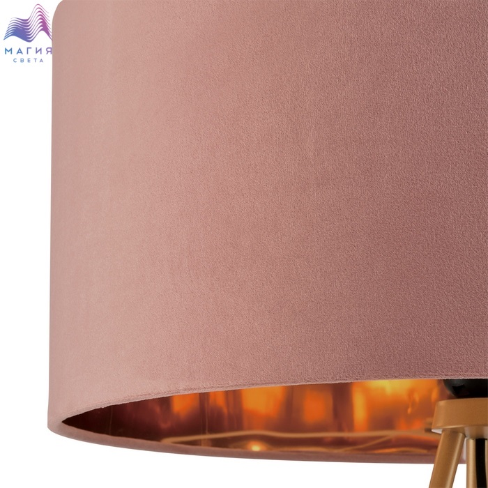 Абажуры серии Lumion Aviola выполнены из бархатной ткани на акриловой фольгированной подложке. Золотая внутренняя часть плафона добавляет мягкости освещению и при этом делает торшеры более торжественными и броскими. Стойка основания в виде металлической треноги выкрашена в золотистый цвет.