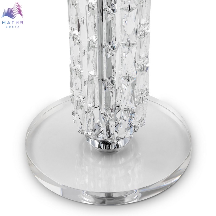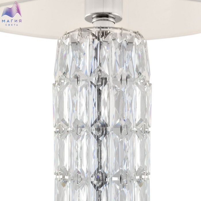 Коллекция Maytoni Talento органично впишется как в классический, так и современный интерьер. Металлическая арматура цвета "хром" обильно декорирована стеклянными элементами. Абажуры из ПВХ покрыты белой тканью.