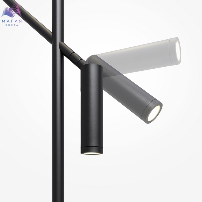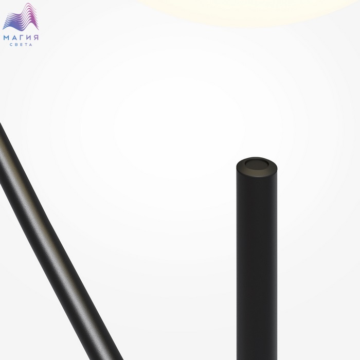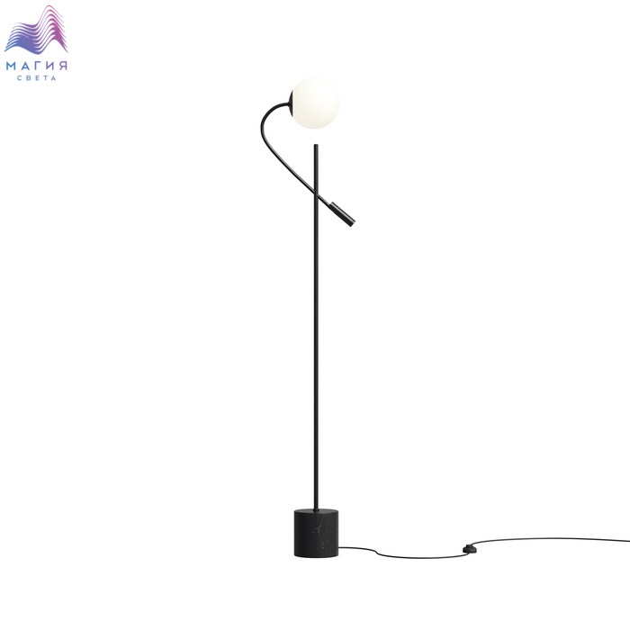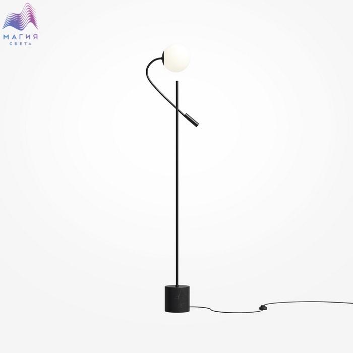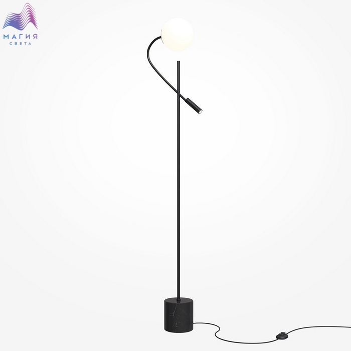 напольный светильник Maytoni Fly оснащен 2 источниками света: белым матовым плафоном и спотом. На месте, где обычно расположен плафон, у торшера Fly находится выключатель второго источника света - поворотного LED-спота с направленным светом. Второй источник света - сменная лампа с цоколем Е14 - расположен в плафоне-шаре и включается при помощи пуш-кнопки на проводе.