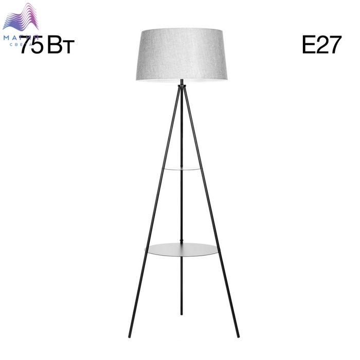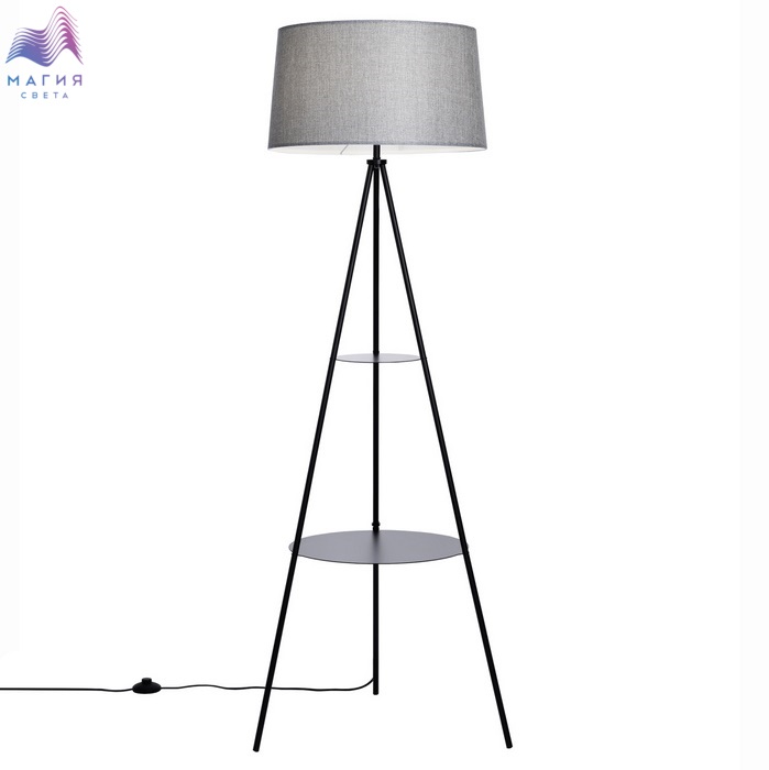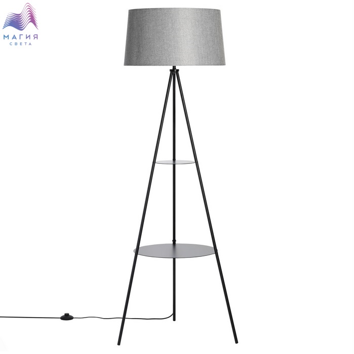 Торшер Citilux Рейнер CL806022 оснащен двумя удобными столиками-полками. Материал: металл/текстиль. Цвет: черный/серый.