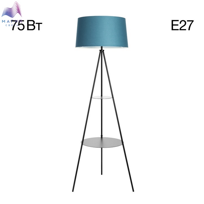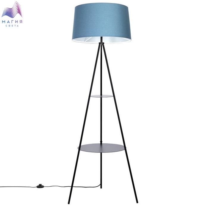Торшер Citilux Рейнер CL806023 оснащен двумя удобными столиками-полками. Материал: металл/текстиль. Цвет: черный/синий.