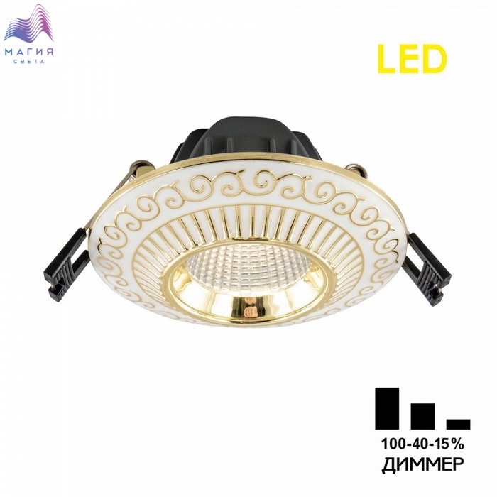 Встраиваемый светодиодный светильник Citilux Боска CLD041NW2 в классическом стиле. Корпус из прочного полимера, цвет белый с золотистым узором. Мощность 7Вт, цветовая температура 3500К – нейтральный свет. Встроенный ступенчатый диммер 100-40-15% управляется обычным настенным выключателем. Модель подходит для всех типов навесных и натяжных потолков.