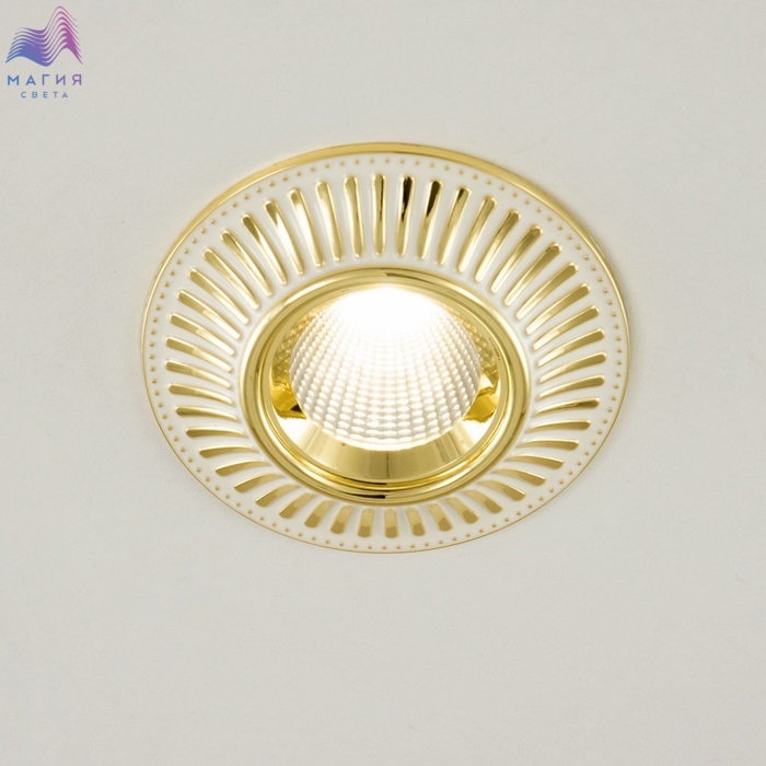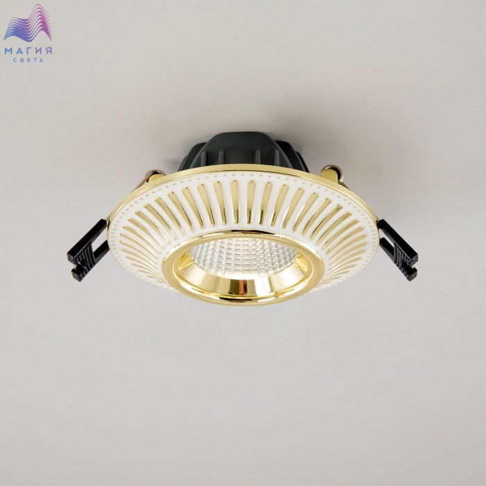 Встраиваемый светодиодный светильник Citilux Дзета CLD042NW2 в классическом стиле. Корпус - полимер, форма - круг. Цвет - белый с золотистым рисунком. Встроенный ступенчатый диммер 100-40-15% управляется обычным настенным выключателем. Модель подходит для всех типов навесных и натяжных потолков.