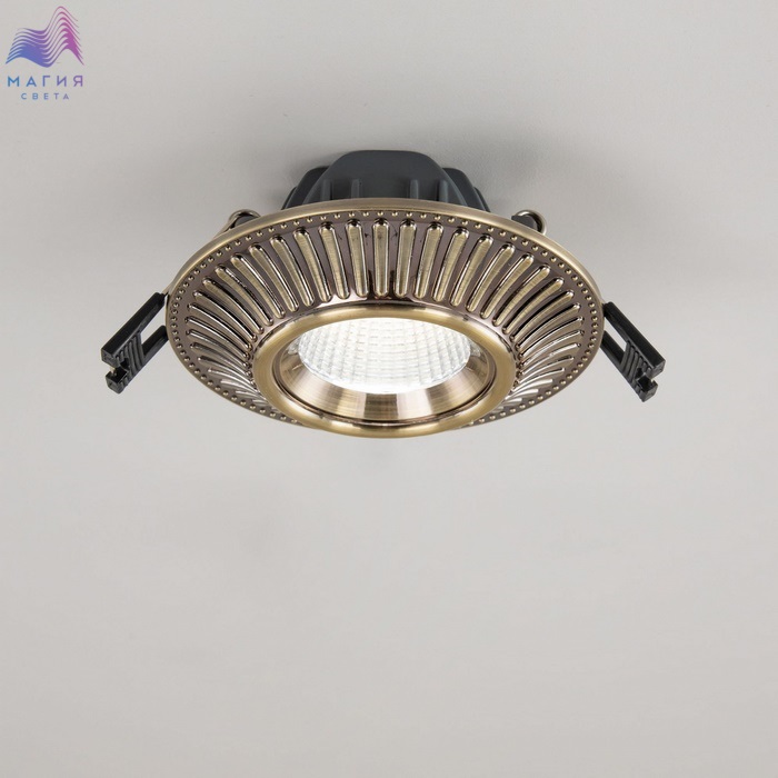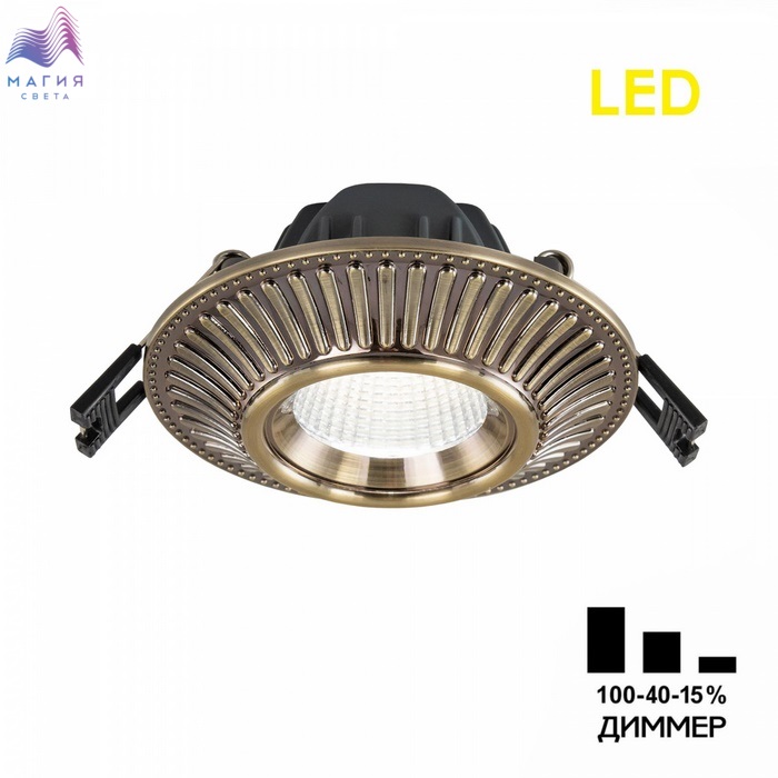 Встраиваемый светодиодный светильник Citilux Дзета CLD042NW3 в классическом стиле. Корпус из прочного полимера, круглой формы, с текстурным рисунком, цвет бронза. Мощность 7Вт, цветовая температура 3500К – нейтральный свет. Встроенный ступенчатый диммер 100-40-15% управляется обычным настенным выключателем. Модель подходит для всех типов навесных и натяжных потолков.