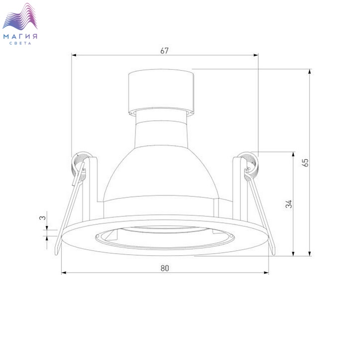 Глубина встройки с лампочкой составит - 65-75 мм.