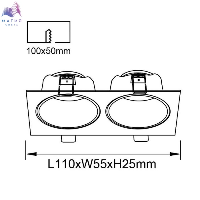 Глубина встройки с лампочкой составит примерно 8,5 см.