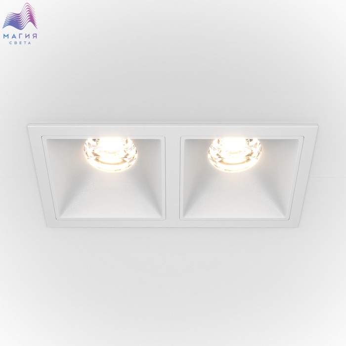 Встраиваемый светильник Maytoni Alfa LED. Цветовая температура - 3000 K. Мощность: 2*10 Вт. Угол рассеивания: 36°. Светильник диммируется по Triac.