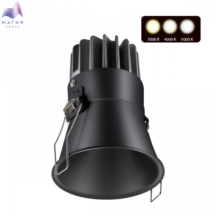 Встраиваемые светодиодные светильники Novotech Lang с переключателем цветовой температуры 3000К (теплый белый) -4000К (нейтральный белый) -6000К (холодный белый).